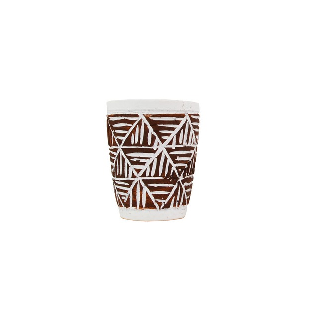 セラミックポット くびれ WH S ユニークなデザイン。 プリミティブ、原始的な印象。 ぷっくりとした丸いフォルムがかわいい陶製のミニ鉢。 上部に施されている、釉薬の質感、カラーリングも綺麗です。 和の雰囲気もありながらモダンな印象です。 多肉植物、盆栽にも似合いそうです。 脚の底面にキズ防止のパット付き -サイズ- Φ8×H10cm 内径6cm 穴あり 素材:陶器 中国製 *一つ一つ手作りのため、若干の色や形の違いがございます。 *実際の商品の色味が写真と異なる場合はございます。 *釉薬による色ムラや色の濃淡、貫入ヒビは避けられません。 *釉薬による貫入ヒビや色味には個体差が生じます。 *細かなキズや汚れ・気泡・ピンホール・くぼみ等が生じる場合がございます。