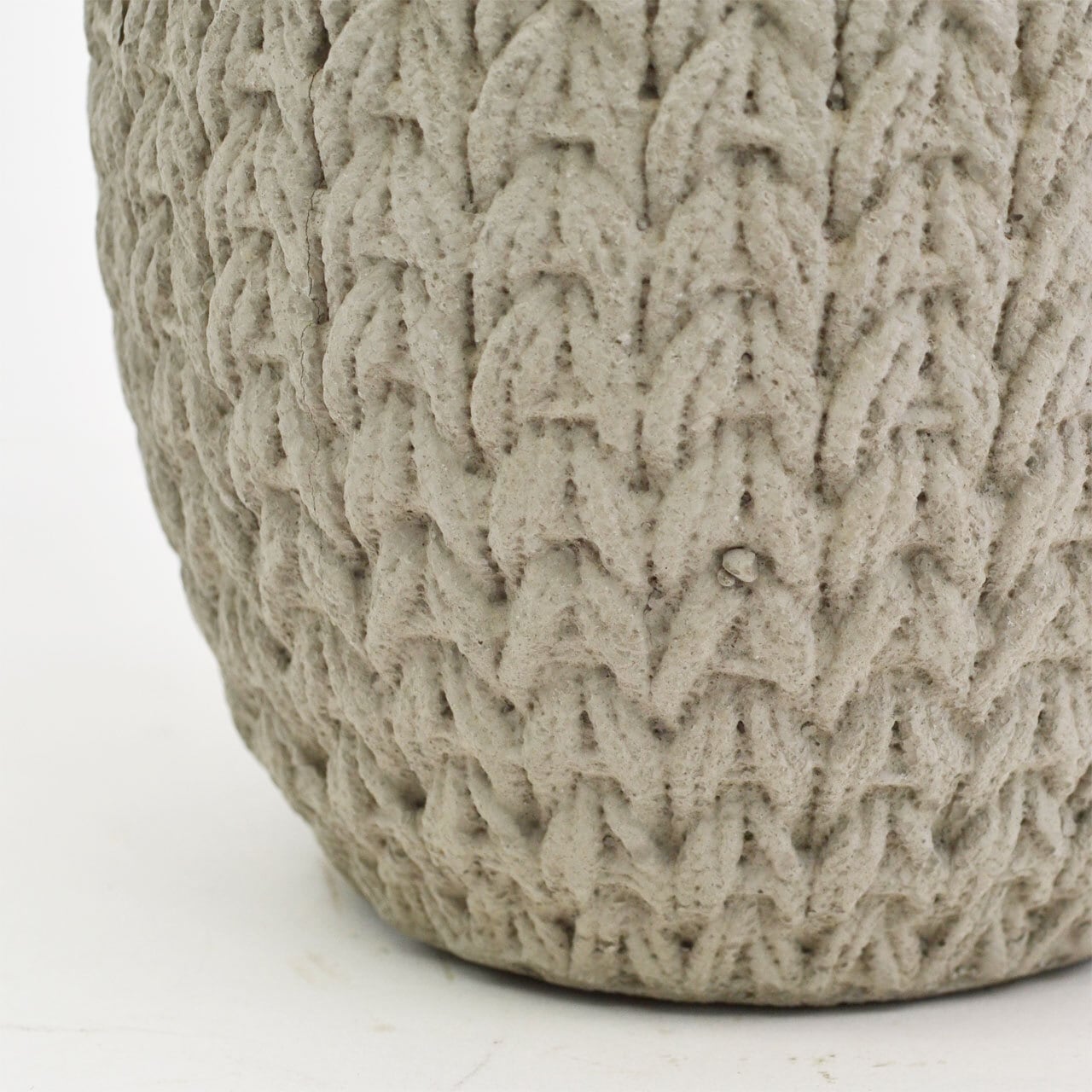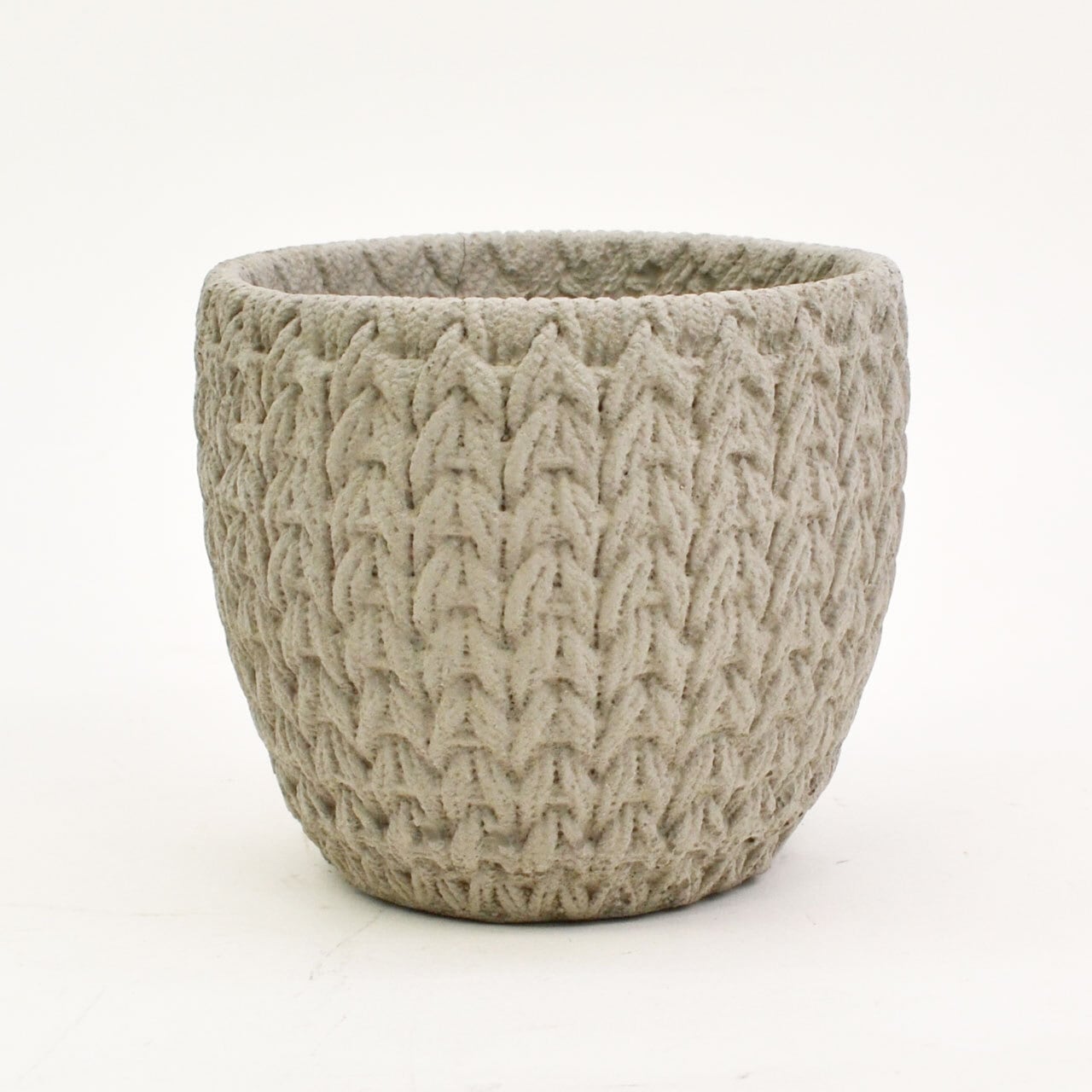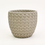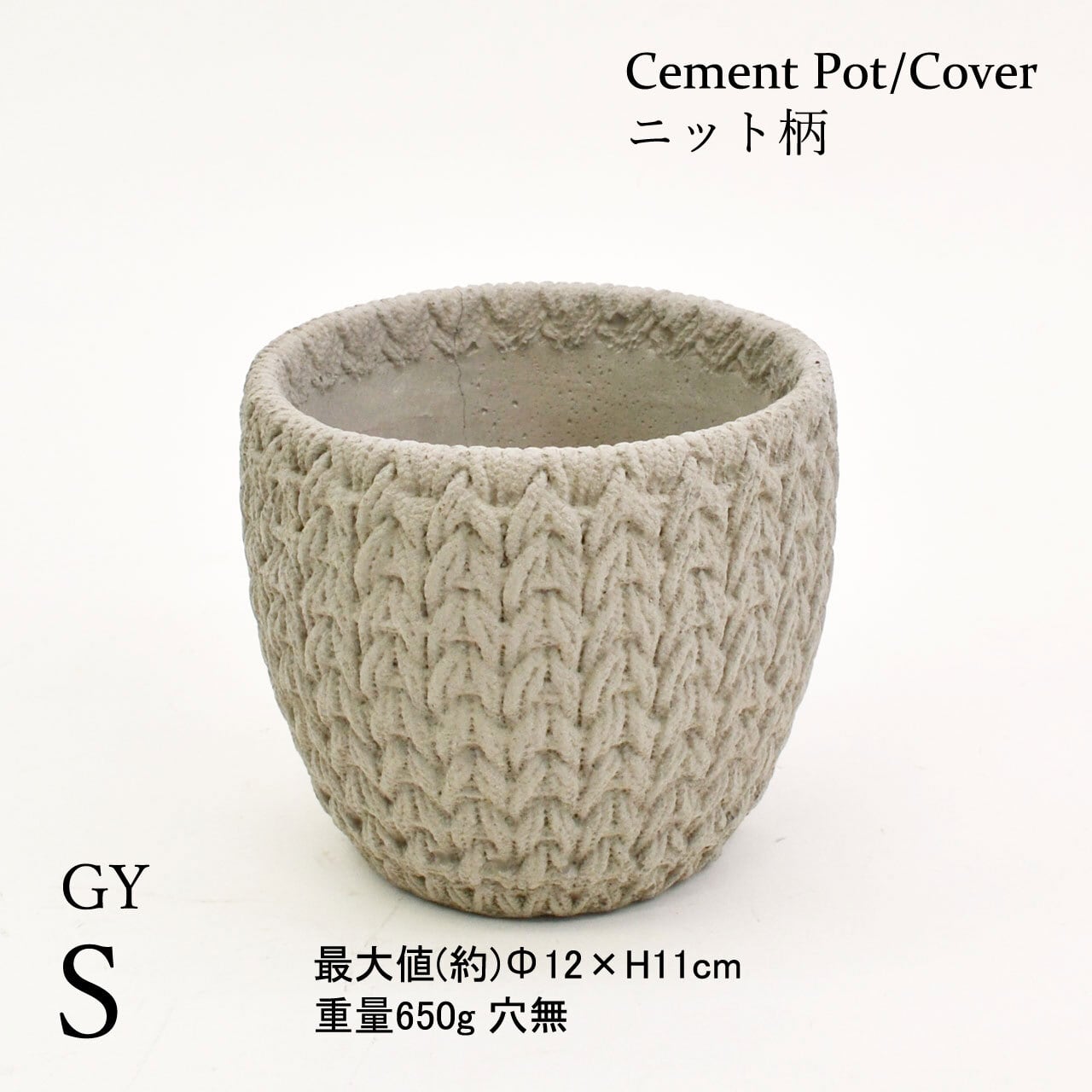 セメントポット ニット柄 GY S ケーブル 編み模様 穴無