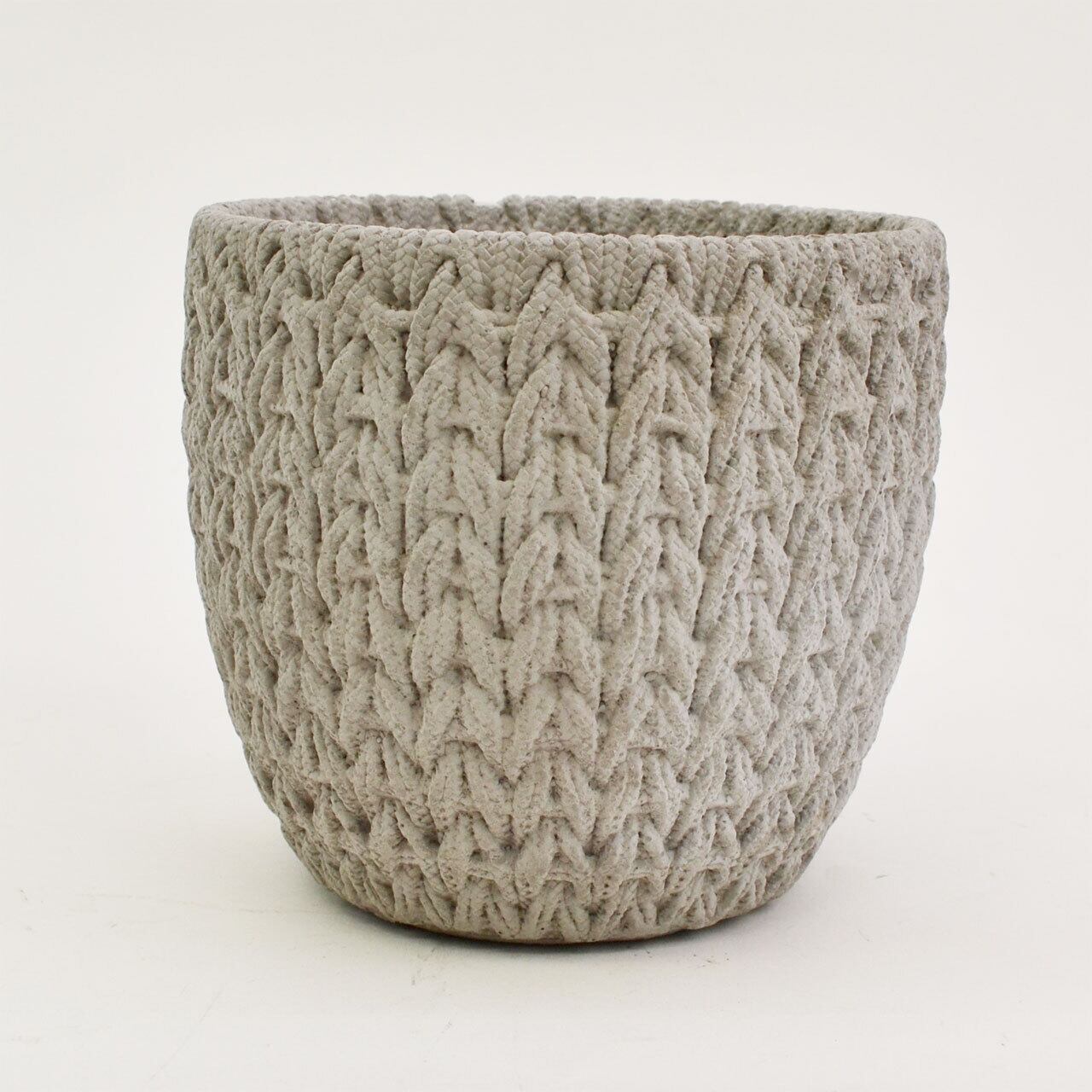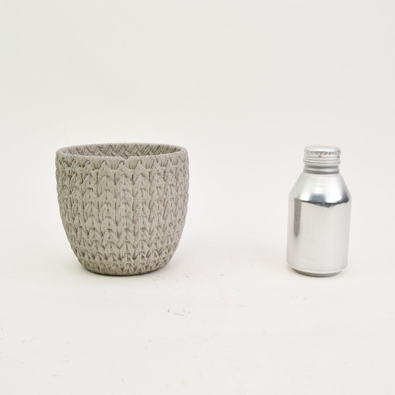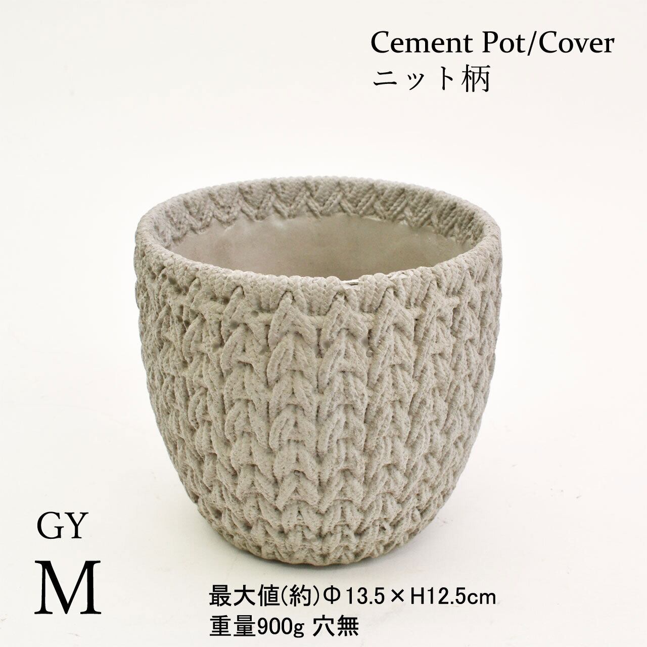 セメントポット ニット柄 GY M ケーブル 編み模様 穴無