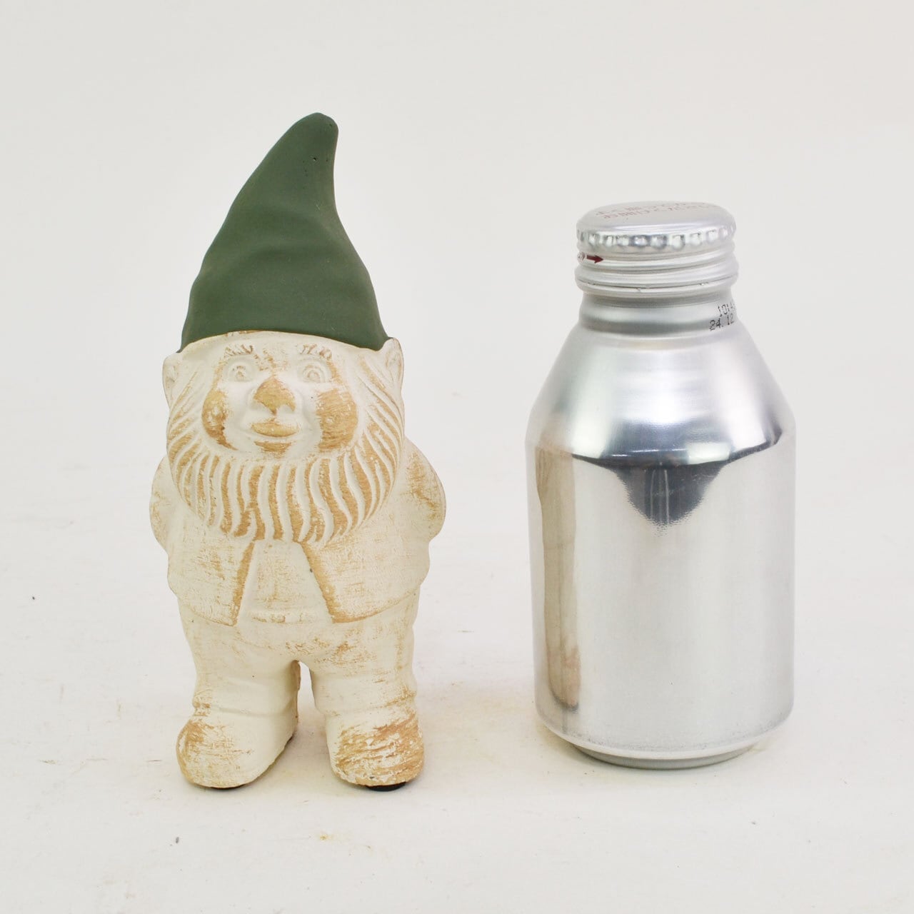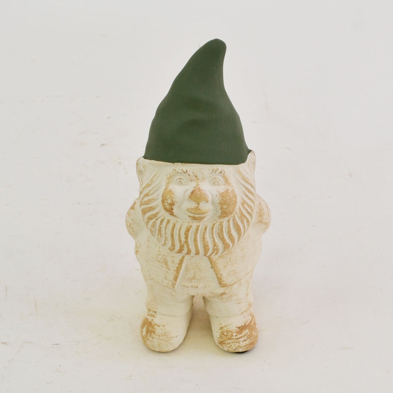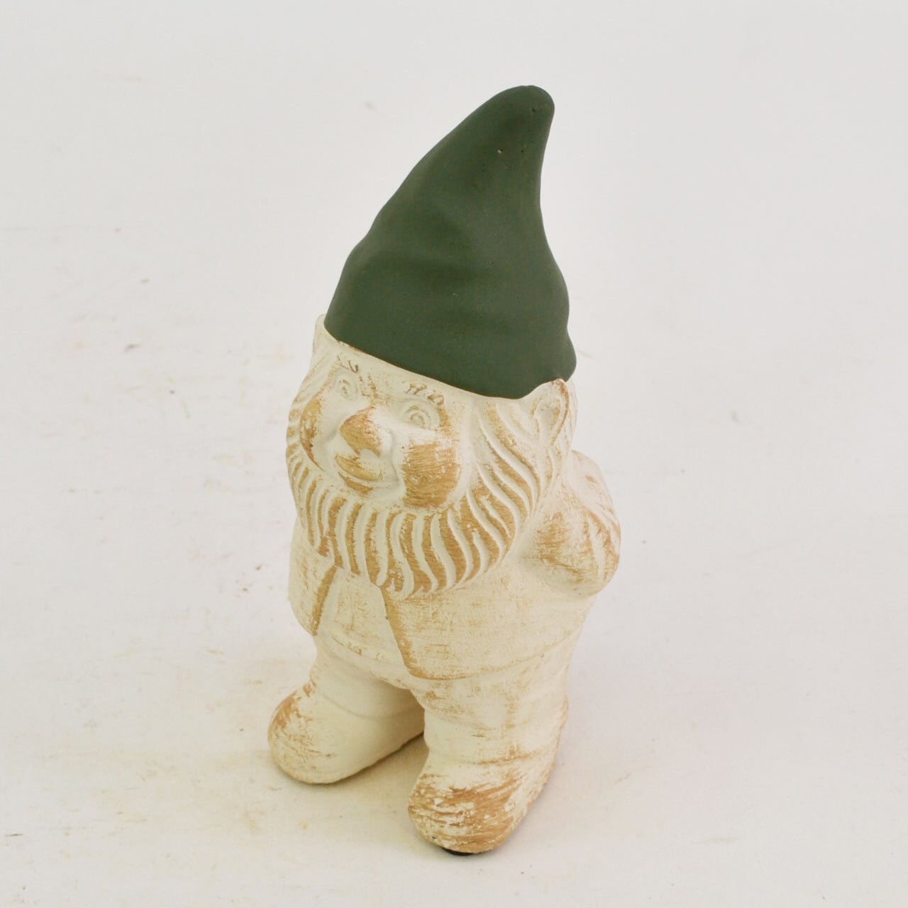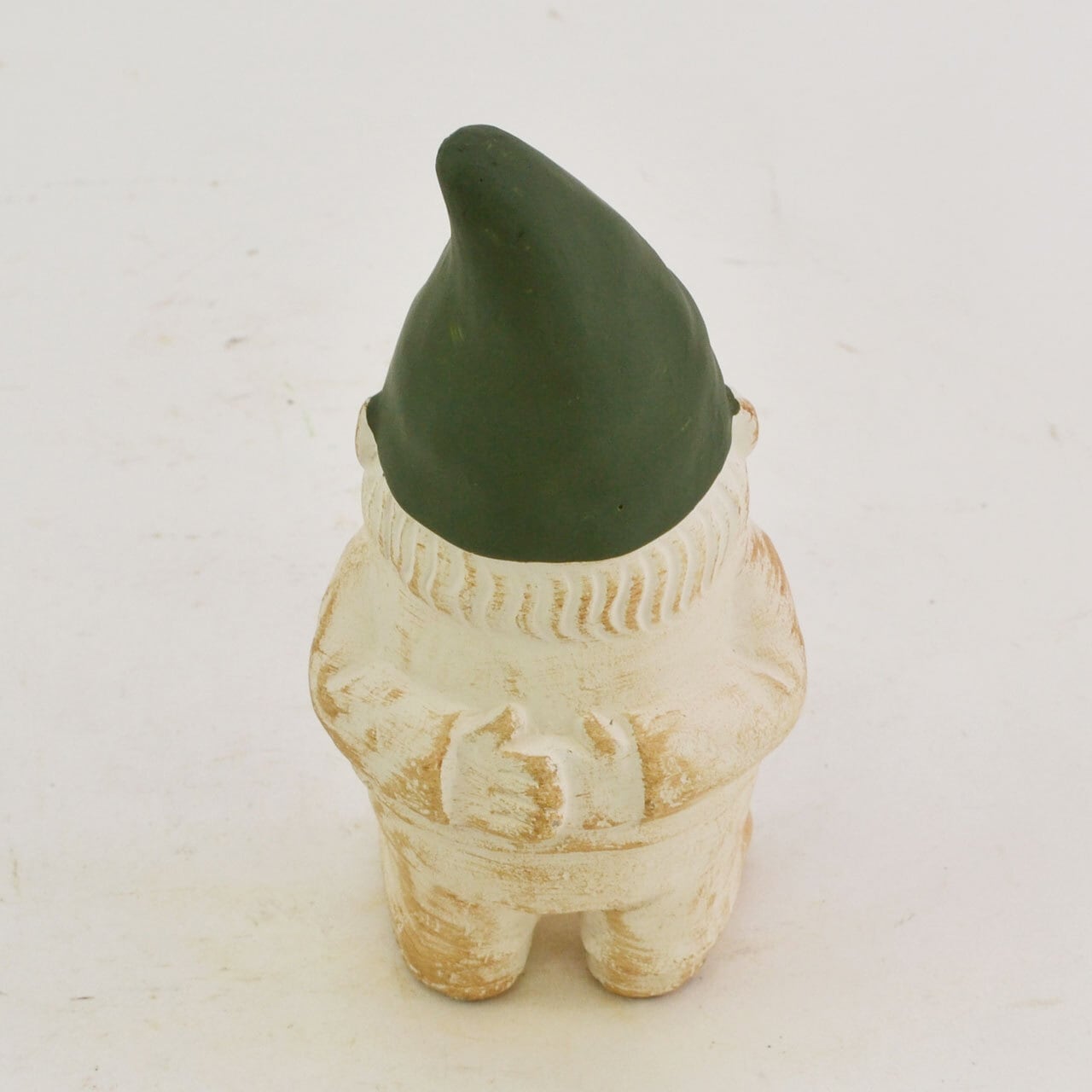 緑色の帽子をかぶった愛らしい表情のこびとさん、小人のオブジェ。