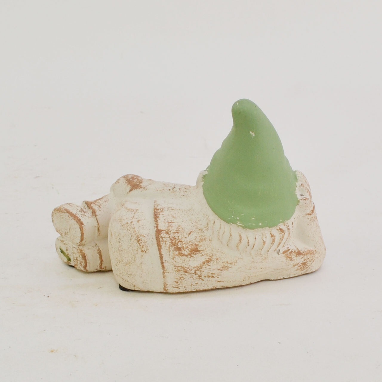 黄緑色の帽子をかぶった愛らしい表情のこびとさん、小人のオブジェ。