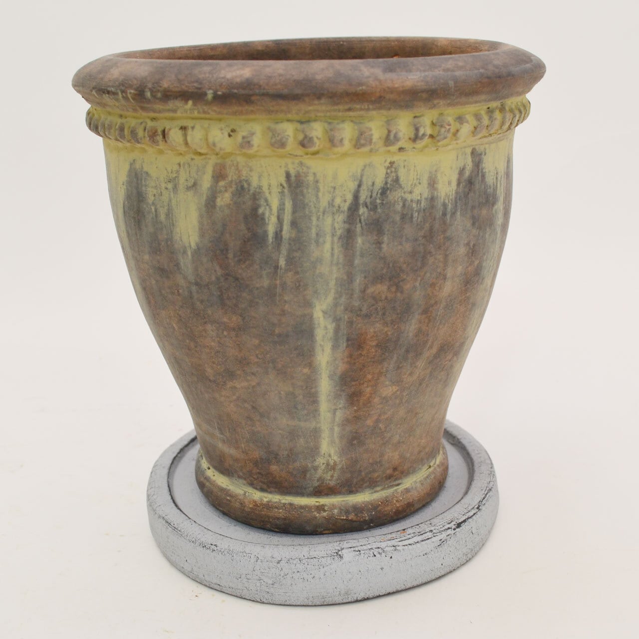 植木鉢の定番、テラコッタに色付けてアンティークな風合いに仕上げています。