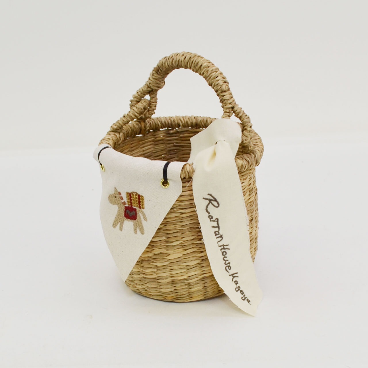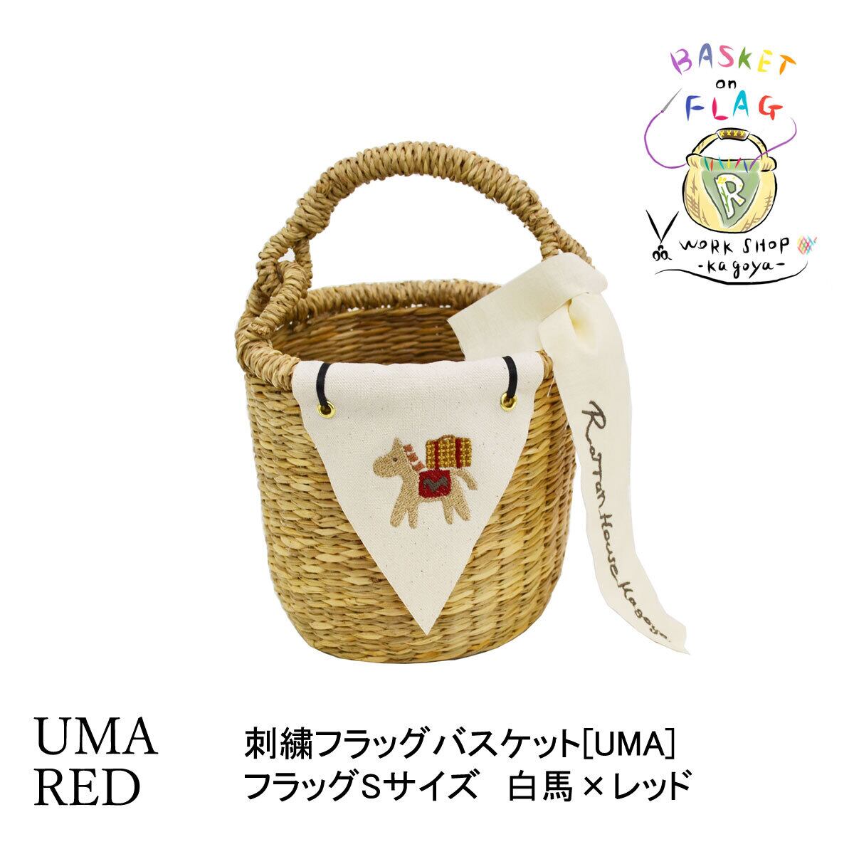 刺繍フラッグバスケット S ホワイトホース×赤 かごバッグ