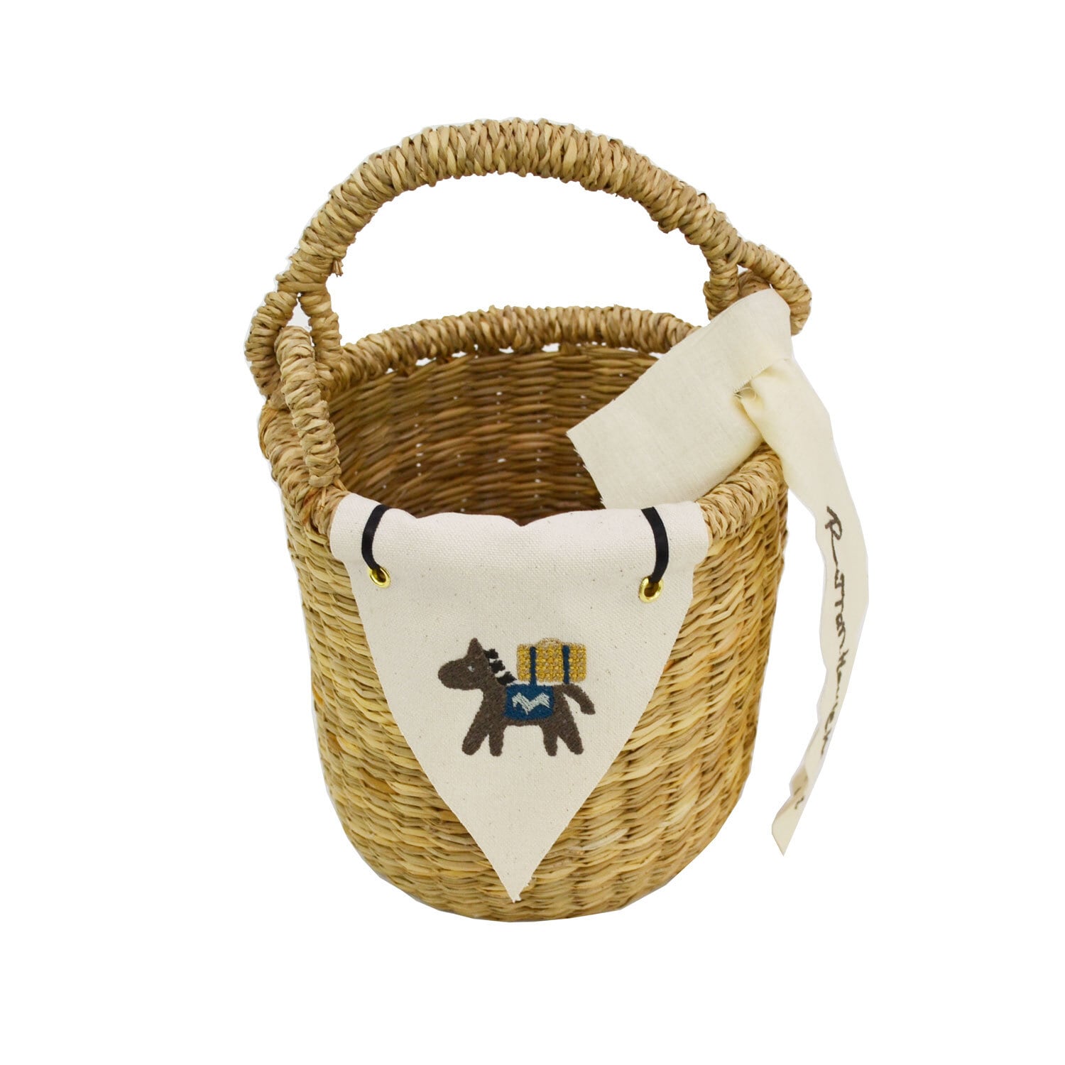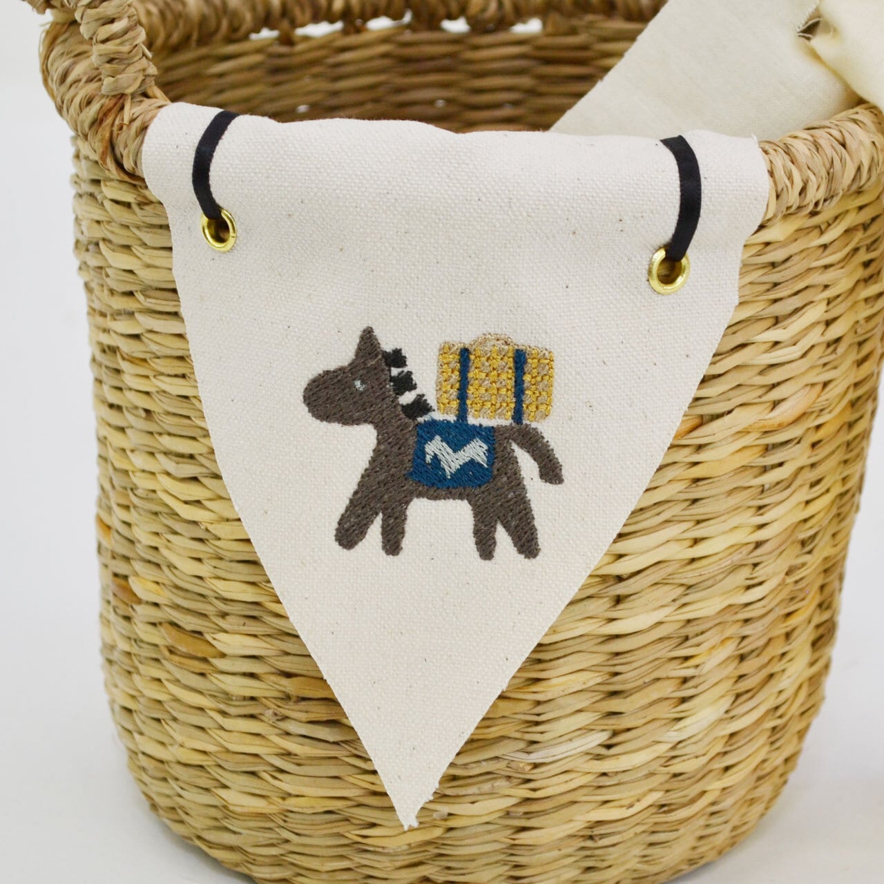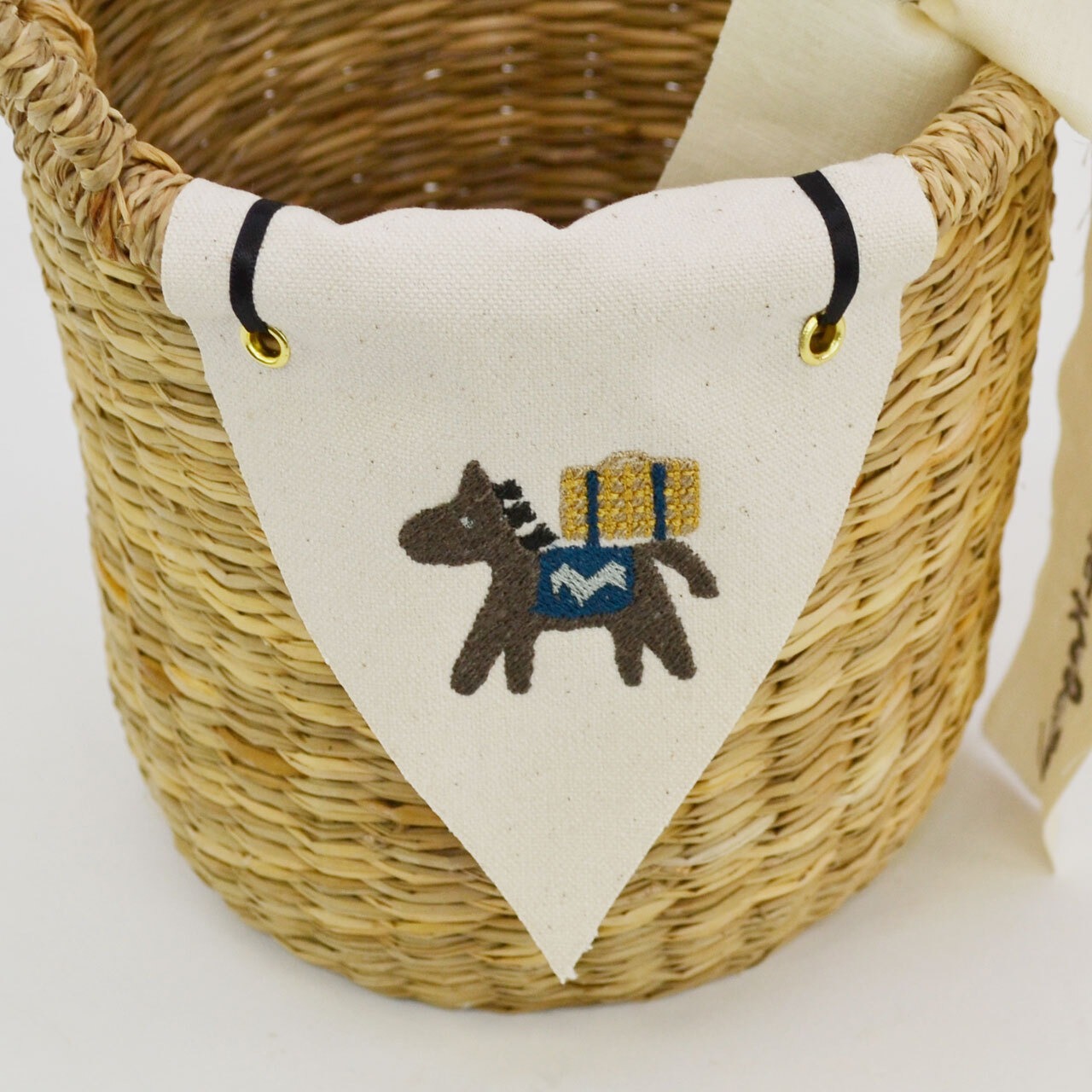 刺繍の絵柄はお馬さんがトランクバスケットを背負ったかわいらしいデザイン。