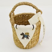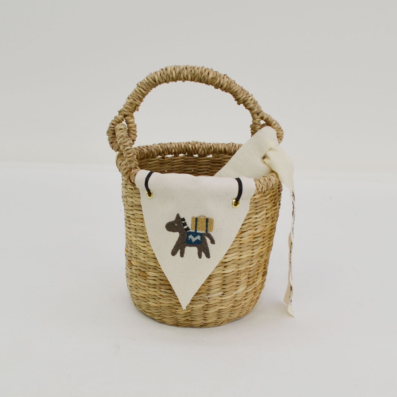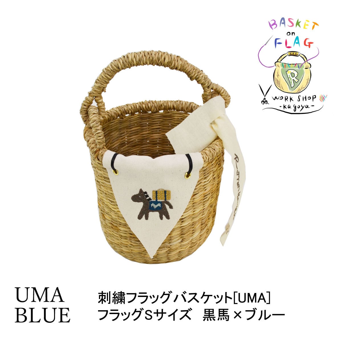 刺繍フラッグバスケット S ブラックホース×青 かごバッグ