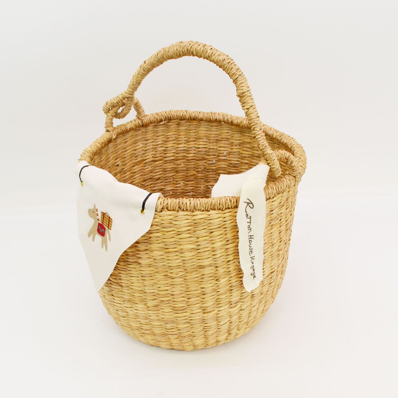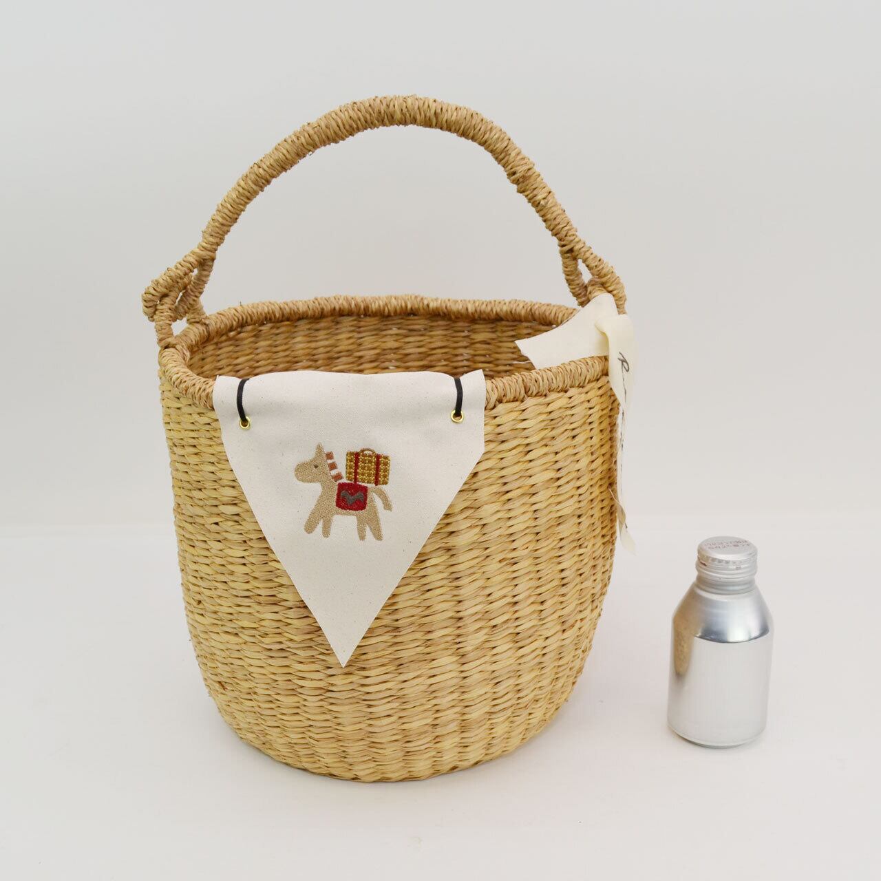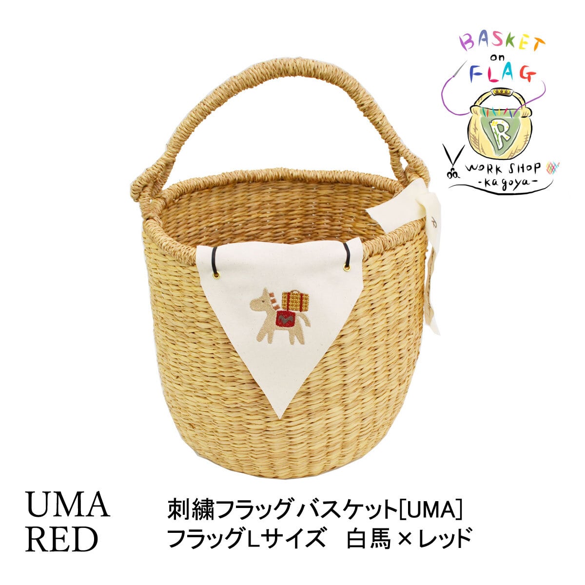 刺繍フラッグバスケット L ホワイトホース×赤 かごバッグ