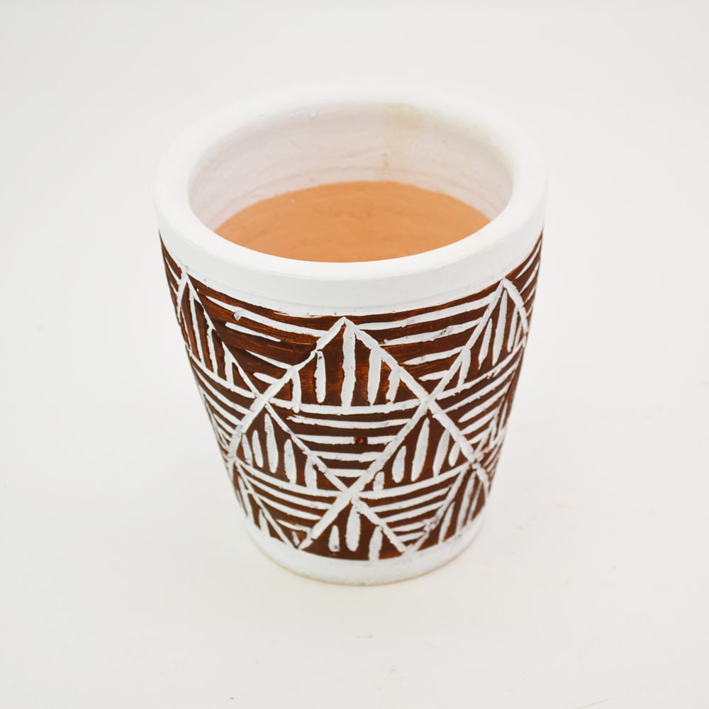 植木鉢の定番、テラコッタに色付けてプランターです。