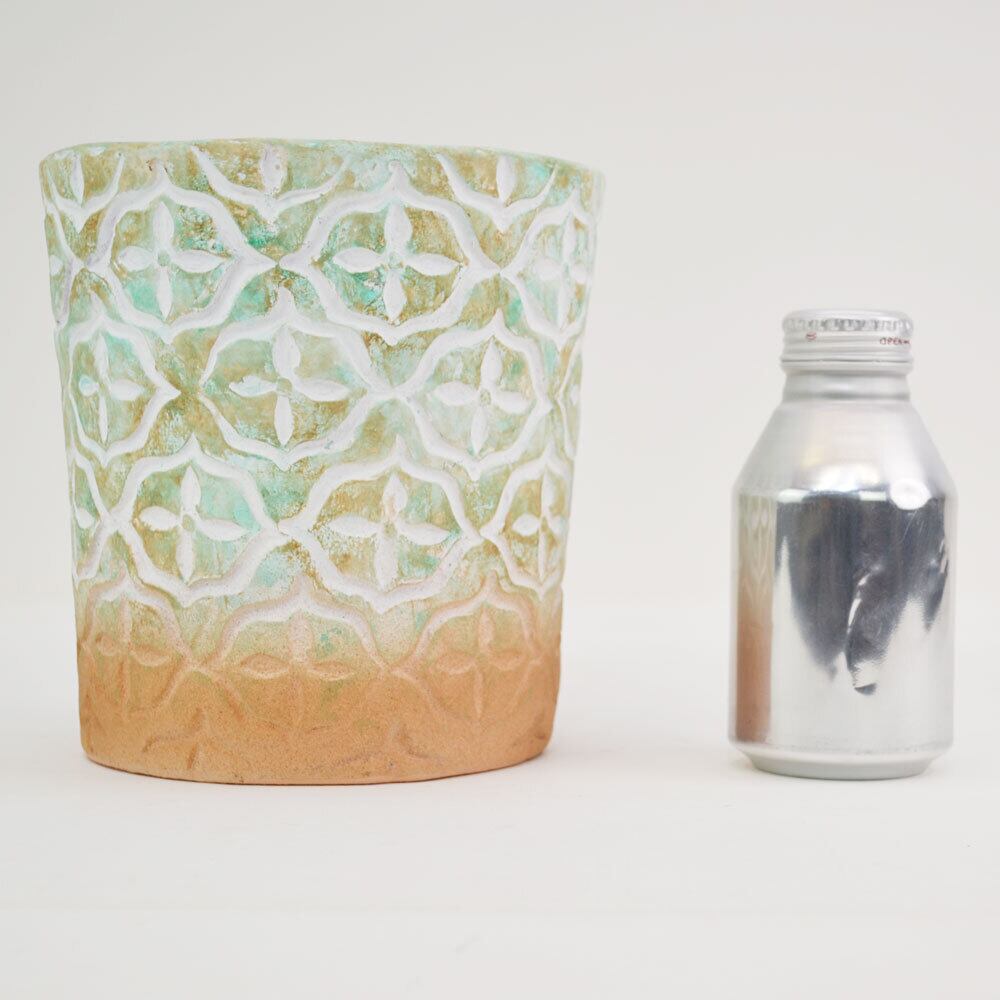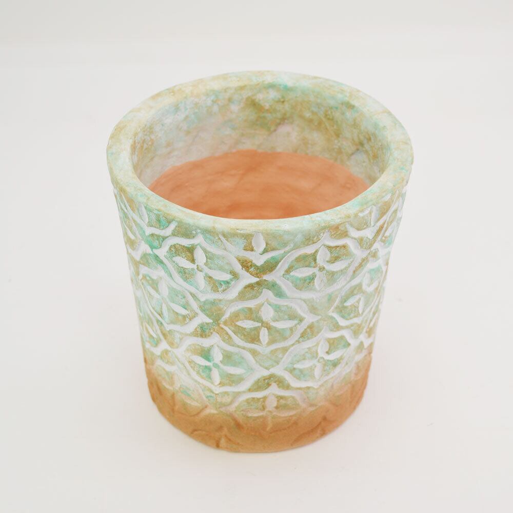 植木鉢の定番、テラコッタに色付けてプランターです。